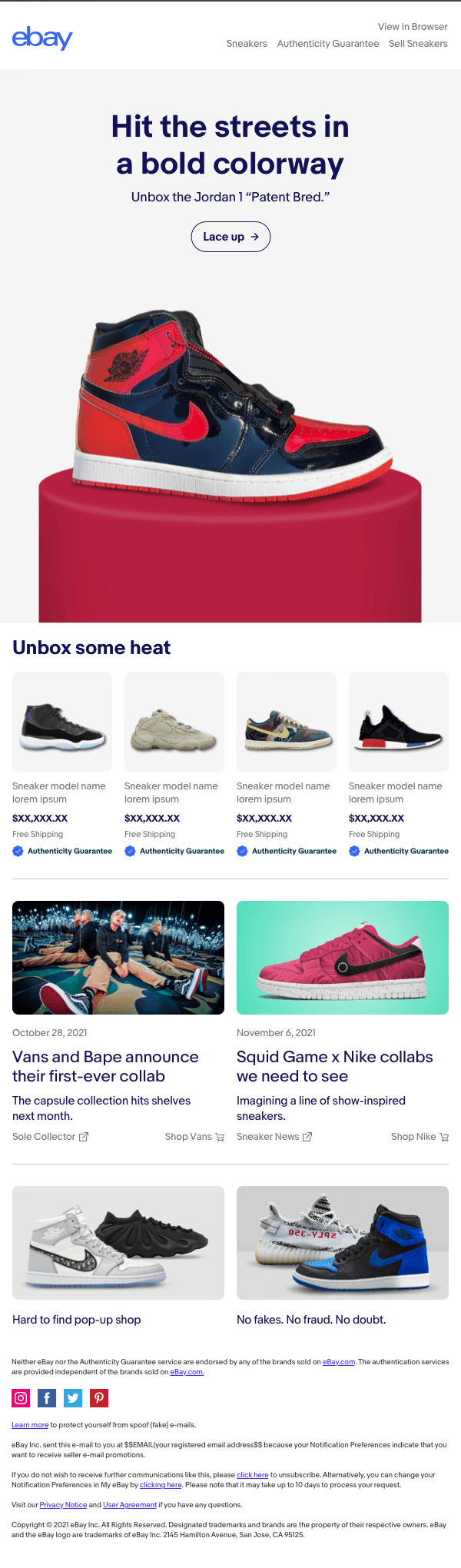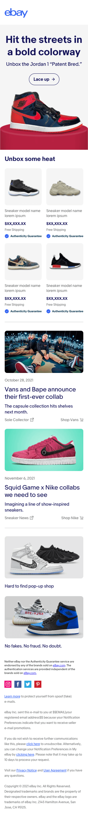 eBay is a top online marketplace with 185 million users and over 2 billion listings. As a leader in its field, eBay aims for meaningful connections beyond just selling. During my time at FEED/DEPT®, I designed campaigns tailored for eBay's primary website, email and social media. My role involved creating compelling visuals that effectively conveyed eBay's message and brand identity.